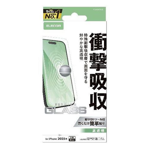 エレコム(ELECOM) PM-A25CFLGZ iPhone17 Pro ガラスフィルム 高透明 衝撃吸収 10H 指紋防止 気泡防止 飛散防止 貼り付けツール付