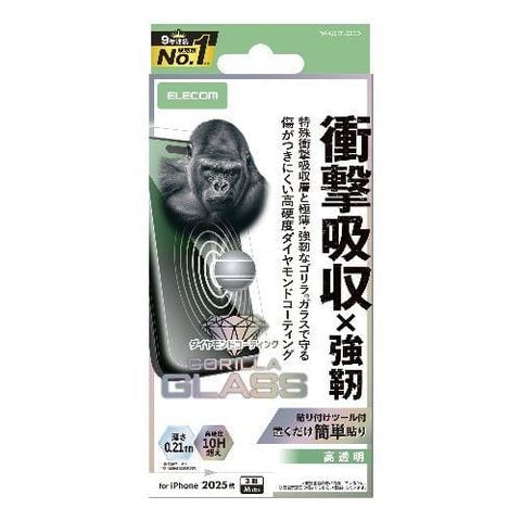 エレコム(ELECOM) PM-A25CFLGZOD iPhone17 Pro ガラスフィルム 高透明 衝撃吸収 10H超 Gorilla R ダイヤモンドコート 傷に強い 薄型