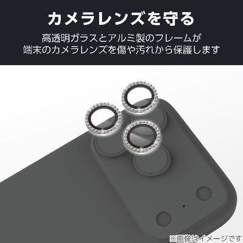エレコム(ELECOM) PM-A25CFLLGRSV シルバー iPhone17 Pro / iPhone 17 Pro Max レンズガラスフィルム ラインストーン 高透明 10H 指紋防止 貼り付けツール付