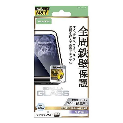 エレコム(ELECOM) PM-A25DFLGFOM ブラック iPhone17 Pro Max ガラスフィルム アンチグレア 全周保護 角割れ防止 フレーム付 9H Gorilla R 薄型