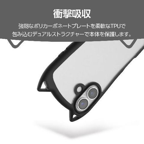 ■猫耳型のアクセントが可愛らしく、背面のクリアパネルで端末本来のカラーを活かしながら、遊び心と実用性を兼ね備えたハイブリッドケースです。