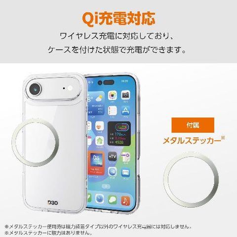エレコム(ELECOM) PM-A25BD3OTCR クリア iPhone Air ケース ハイブリッド D3O R 超衝撃保護 磁気吸着対応メタルステッカー付