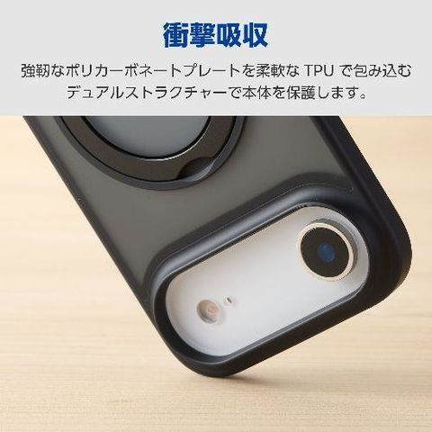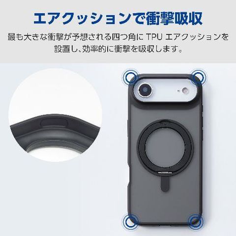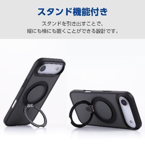 エレコム(ELECOM) PM-A25BMAGSTBK ブラック iPhone Air ケース ハイブリッド 衝撃吸収 MAGKEEP 磁力吸着ワイヤレス充電対応 360度回転スタンド付