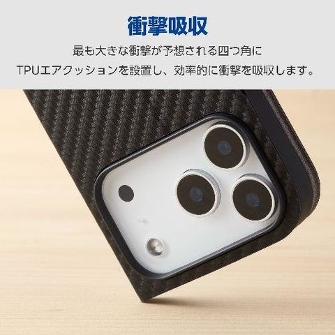 エレコム(ELECOM) PM-A25CPLFUCB カーボンブラック iPhone17 Pro ケース レザー 手帳型 マグネット 衝撃吸収 超軽量 薄型 スタンド機能付 UltraSlim