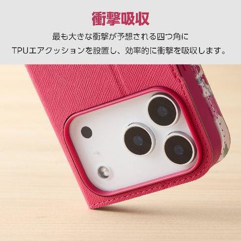 エレコム(ELECOM) PM-A25CPLFUJPND ディープピンク iPhone17 Pro ケース レザー 手帳型 マグネット 衝撃吸収 超軽量 薄型 スタンド機能付 花柄 UltraSlim