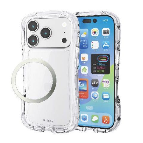 エレコム(ELECOM) PM-A25CGRPACR クリア iPhone17 Pro ケース ハイブリッド 衝撃吸収 磁気吸着対応メタルステッカー付 Grippy