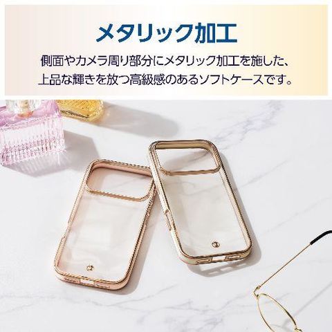 ■側面のエッジ部分やカメラ周り部分にメタリックラインを施した、上品な輝きを放つ高級感のあるソフトケースです。