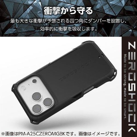 ■磁力装着タイプのワイヤレス充電器に対応した“MAGKEEP”シリーズ。落下時に最も大きな衝撃が予想される四つ角にバンパーを設置し、効率的に衝撃を吸収する耐衝撃性ZEROSHOCKケースです。