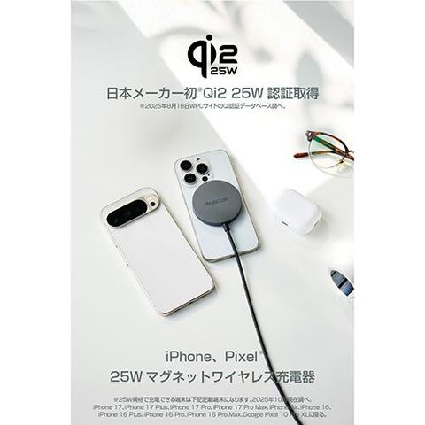 対応機種:Qi2 25W(MPP)規格のワイヤレス充電に対応した機器