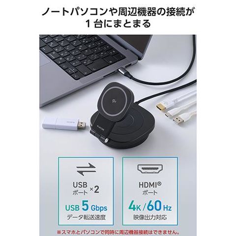エレコム(ELECOM) DST-Q041BPBK ブラック ドッキングステーション Qi2 15Wワイヤレス充電 4K/60Hz HDMI PD100W入力/85W出力 4in1 USB 3.2 Gen1 5Gbps