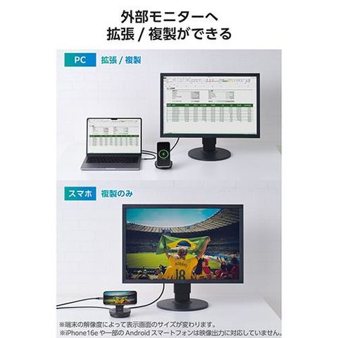■Qi2対応のワイヤレス充電スタンドを備えた4in1ドッキングステーションです。スマートフォンやAirPodsのワイヤレス充電に加え、ノートパソコンや周辺機器の接続も1台にまとめることができます。また折りたたんでコンパクトに収納できます。