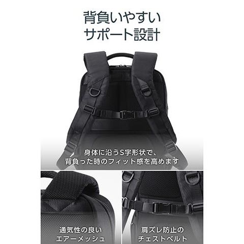 エレコム(ELECOM) ZSB-BP01P14BK ブラック リュック 13L 衝撃吸収 14インチPC対応 出張 通勤 小物整理ポケット付 撥水 バックパック ZEROSHOCK