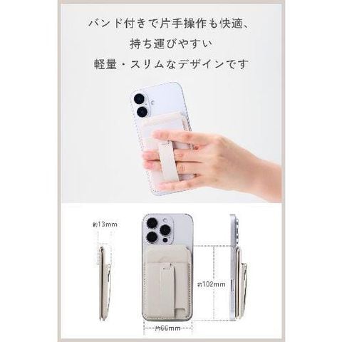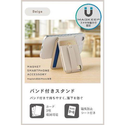 エレコム(ELECOM) AMS-MAGCSBBG ベージュ MagSafe カードケース スタンド iPhone用 磁気防止シート付 3枚収納 マット素材 バンド付 MAGKEEP