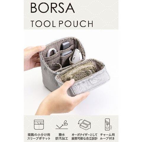 エレコム(ELECOM) BMA-QTGPTLSGY グレー ガジェットポーチ 自立型 トラベルポーチ 撥水 キルティング デスクオーガナイザー 収納ケース 小物入れ