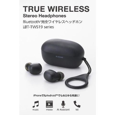 エレコム(ELECOM) LBT-TWS19BK ブラック 完全ワイヤレスヘッドホン 片耳約3.3g 超ミニサイズ・軽量 Bluetooth 5.2 小型充電ケース Type-C