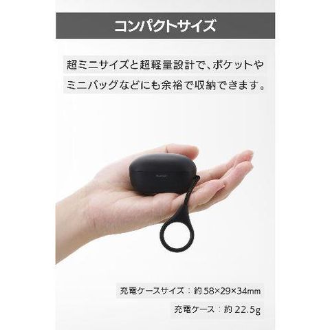 ■手のひらにすっぽり収まる横幅約58mmの超ミニサイズと、充電ケースを含めてもわずか約25.8gの超軽量設計で、ポケットやミニバッグなどにも余裕で収納できます。