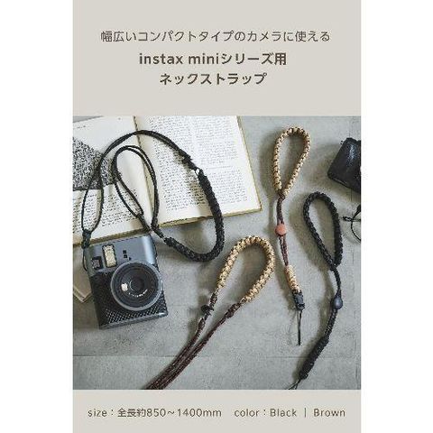 ■instax(チェキ)や写ルンですなど、幅広いコンパクトタイプのカメラに使えるネックストラップです。※取り付け部の形状により使用できない場合があります。