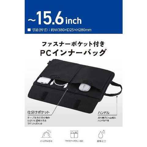 エレコム(ELECOM) BM-IBHP15BK ブラック パソコンケース 15.6インチ 撥水 軽量 スリム ハンドル付き 前面仕分けポケット ダブルファスナー