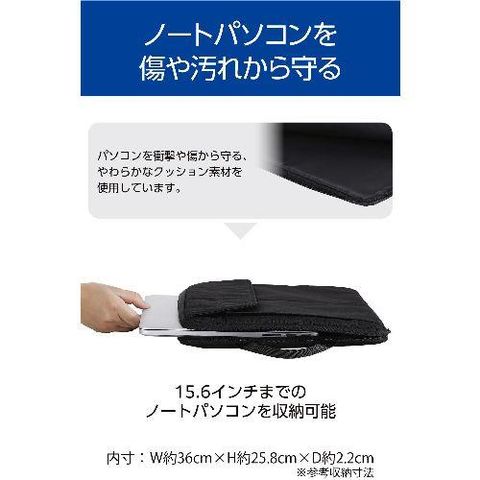内寸:W約360mm×D約22mm×H約258mm ※15.6インチノートパソコンの参考収納寸法