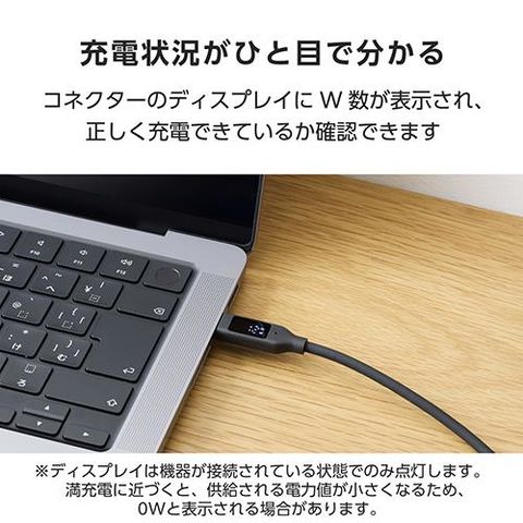 ■充電状況がひと目で分かる、電力ディスプレイ付きのUSB Type-C(TM)-USB Type-Cケーブルです。