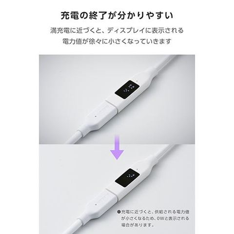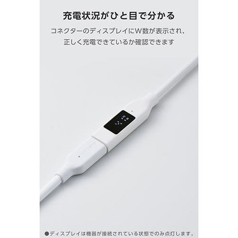 ■コネクター部に搭載されたディスプレイで、接続した機器への充電電力値がリアルタイムで確認できます。正しく充電できているか視覚的に確認できるため安心です。
