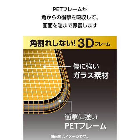 ■ガラスフィルムを衝撃から守るPET素材のフレーム付きで、四つ角が割れない安心設計です。