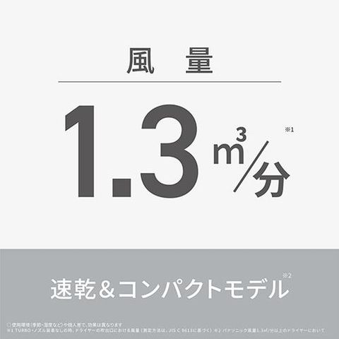 ■コンパクトでも風量1.3m3 /分で、パワフルドライ。