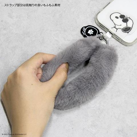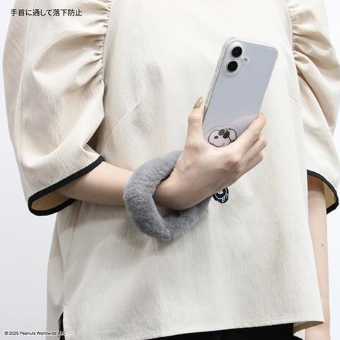 ■もふもふ素材のブレスレットが付属しており、スマートフォンをファッショナブルに持ち歩くことができ、落下防止にも役立ちます