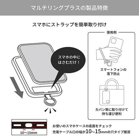 ■充電ケーブル口の幅が10~15mmのスマホケースと組み合わせてのご使用を推奨しております。推奨寸法以外のケースでのご使用は、充電口から本品が抜けやすくなる場合がございますのでご注意ください