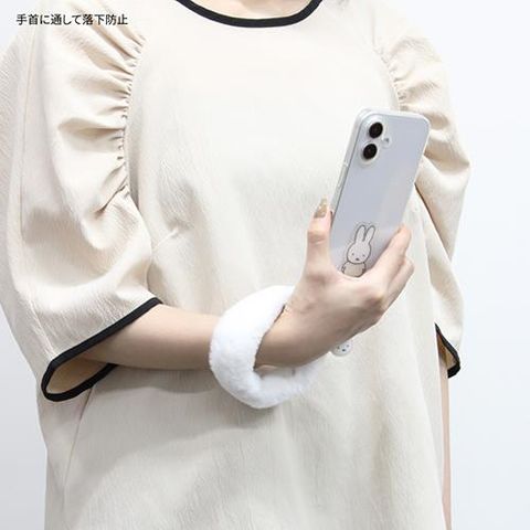 ■もふもふ素材のブレスレットが付属しており、スマートフォンをファッショナブルに持ち歩くことができ、落下防止にも役立ちます