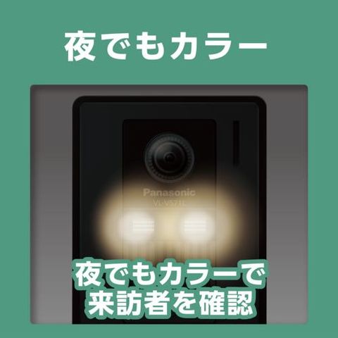 玄関子機にLEDライト(照明用ランプ)を搭載。夜間でも約50センチ先までカラーで映り来訪者を確認できます。