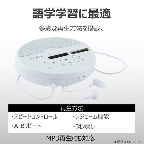 Aurex(オーレックス) AX-CP20W ホワイト ポータブルCDプレイヤー ステレオスピーカー搭載 MP3再生対応