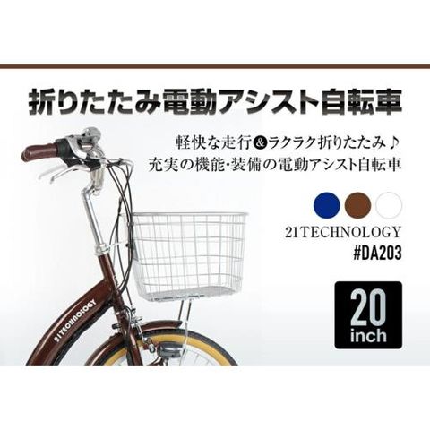 21テクノロジー(21Technology) DA203(チョコブラウン) 電動アシスト自転車 シマノ製3段変速 折りたたみ可 20インチ