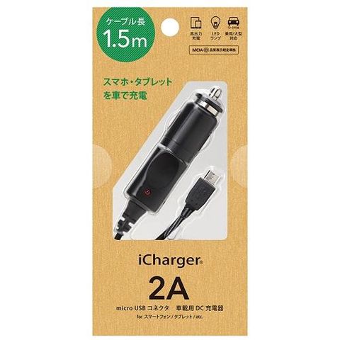 PGA PG-MDC20A01BK ブラック microUSBコネクタ搭載 車載用DC充電器 1.5m