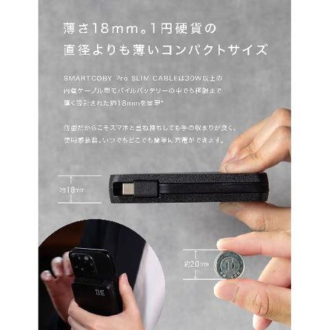 ■手のひらサイズで本体は驚きの薄さ18mmのスリムなモバイルバッテリー