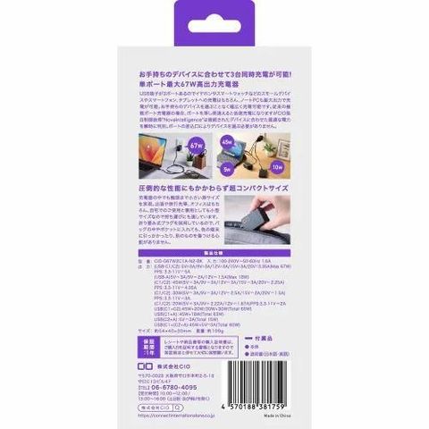 CIO(シーアイオー) NovaPort TRIOII 67W2C1A ブラック 67W 3ポート GaN急速充電器 CIO-G67W2C1A-N2-BK