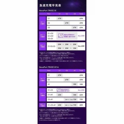 CIO(シーアイオー) NovaPort TRIOII 67W2C1A ホワイト 67W 3ポート GaN急速充電器 CIO-G67W2C1A-N2-WHのレビュー