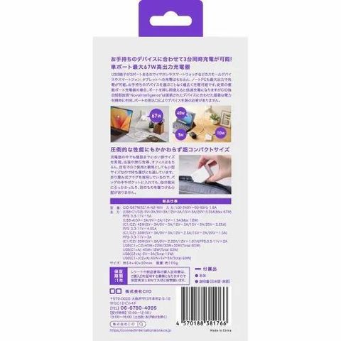 CIO(シーアイオー) NovaPort TRIOII 67W2C1A ホワイト 67W 3ポート GaN急速充電器 CIO-G67W2C1A-N2-WH