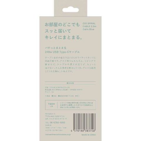 CIO(シーアイオー) CIO-NLSC30000-CC2-CBL カームブルー スパイラルケーブルCtoC 2m