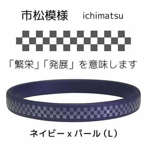 オルアージュ SL0087 市松模様 ネイビー×パール スパークノンX シリコンバンド Lサイズ 静電気緩和ブレスレット