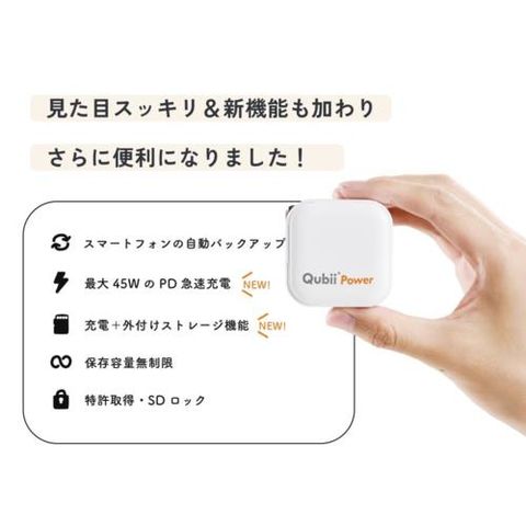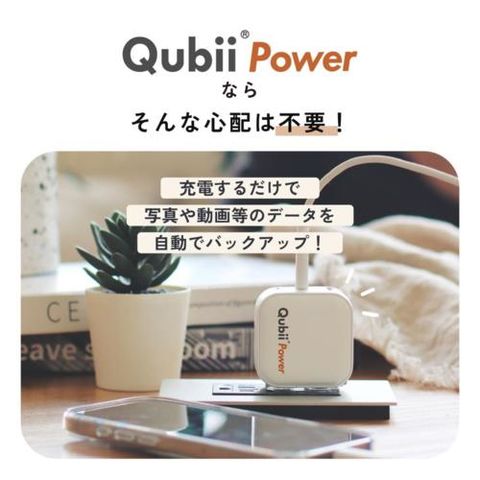 ●急速充電しながらスマホの写真・動画を自動バックアップできるPD充電器&カードリーダー「Qubii Power」です。
