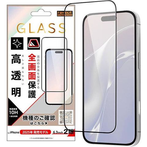 ray-out(レイ・アウト) iPhone17用 ガラスフィルム 全面保護 硬度10H 高透明 / ブラック RH-P52F/CGB