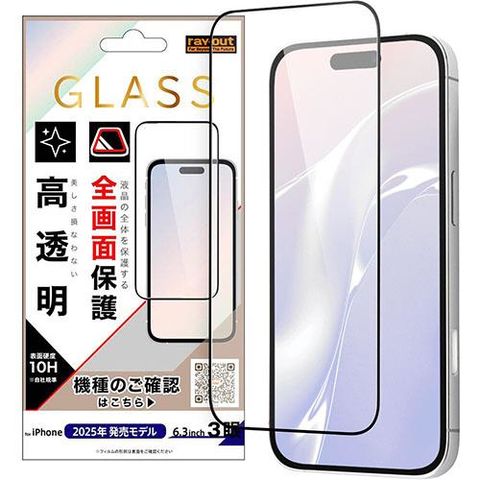 ray-out(レイ・アウト) iPhone17 Pro用 ガラスフィルム 全面保護 硬度10H 高透明 / ブラック RH-P53F/CGB
