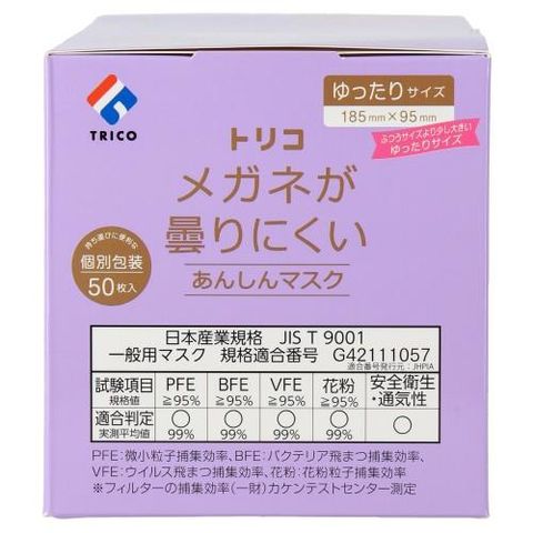 トリコ 404331 メガネが曇りにくいあんしんマスク ゆったり50枚