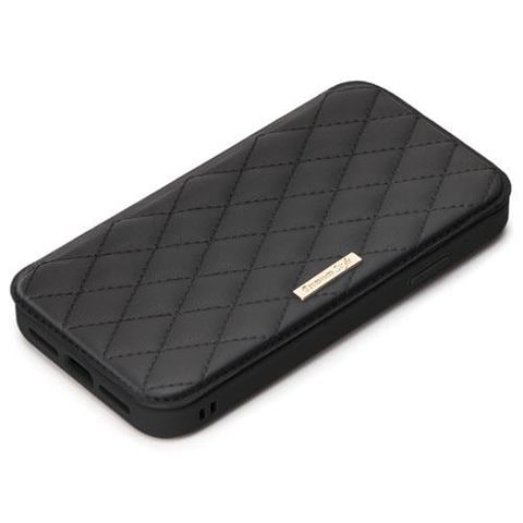PGA PG-21JGF03BK キルティング調ブラック iPhone 13 mini用 手帳型カバー ガラスフリップケース