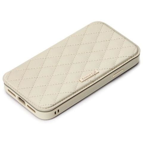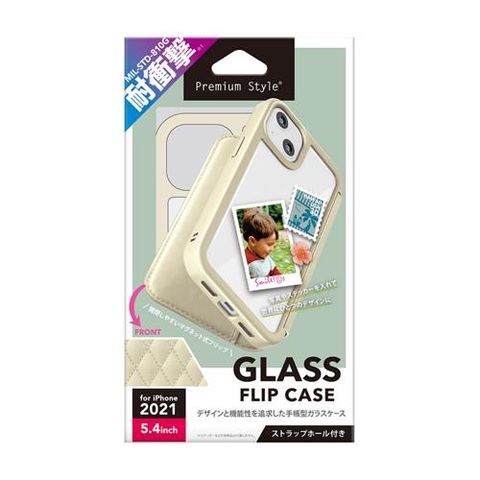 PGA PG-21JGF04IV キルティング調アイボリー iPhone 13 mini用 手帳型カバー ガラスフリップケース