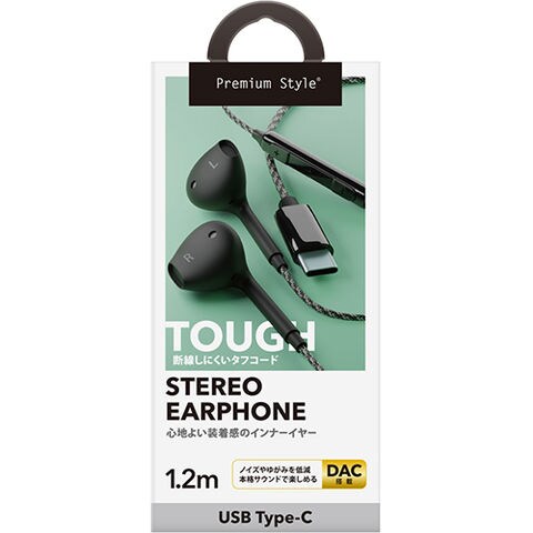 PGA PG-SETC2BK1 ブラック USB Type-C用 ステレオイヤホン インナーイヤー型 タフケーブル