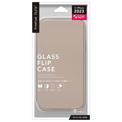 PGA iPhone15用 ガラスフリップケース ベージュ