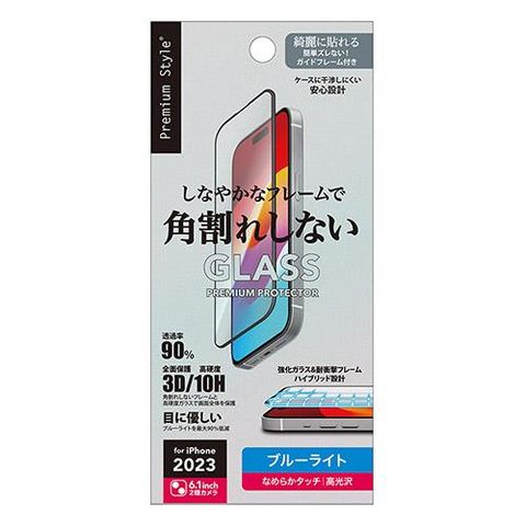 PGA iPhone15用 ガイドフレーム付 液晶全面保護ガラス ブルーライト低減/光沢
