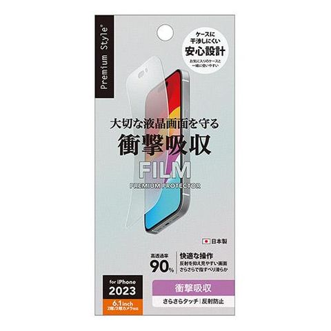 PGA iPhone15/15 Pro用 液晶保護フィルム 衝撃吸収/アンチグレア